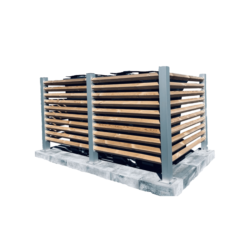Våra avfallsskydd passar sopkärl med 370 liters volym som används vid fastighetsnära insamling (FNI). Eftersom du själv kan bestämma längden på virket, passar avfallsskyddet också sopkärl med större volym, exempelvis 660 liter, som vanligtvis används i flerbostadshus.
