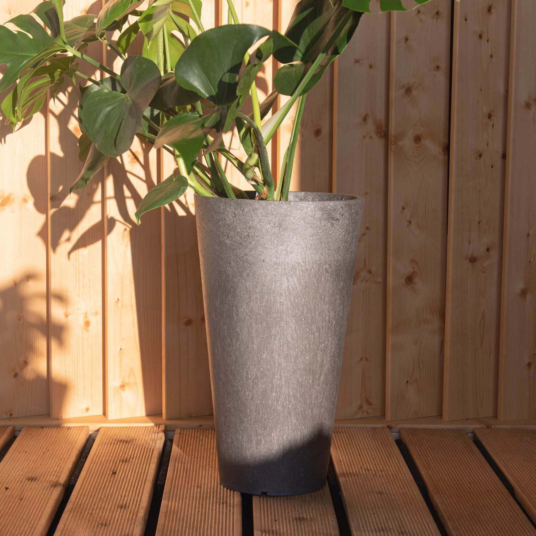 Dessutom är blomkrukan frost- och UV-beständig, vilket innebär att den behåller sin skönhet och kvalitet även under tuffa förhållanden.