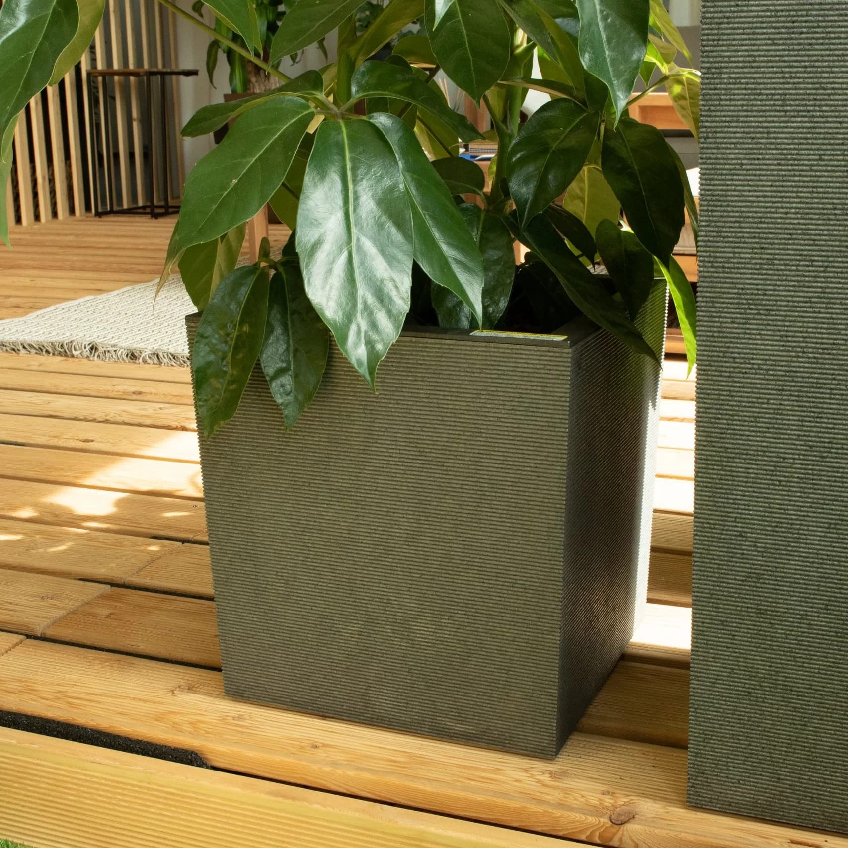Blomkrukan Horizons kubiska form ger en sofistikerad och modern stil till hemmet eller trädgården.