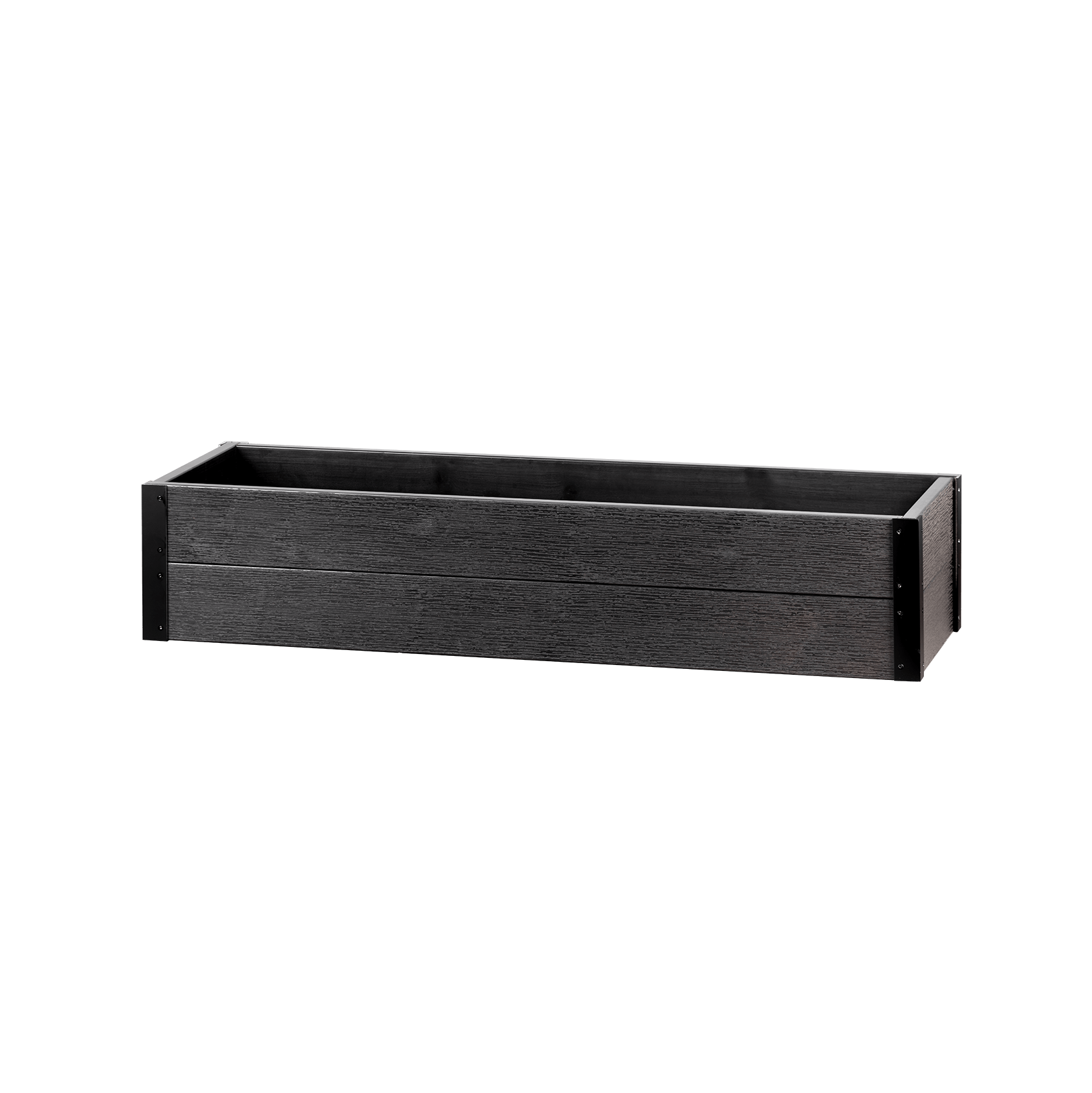 Vår blomlåda i träfiberkomposit är rektangulär i sin design och levereras komplett med vinkeljärn och skruv.