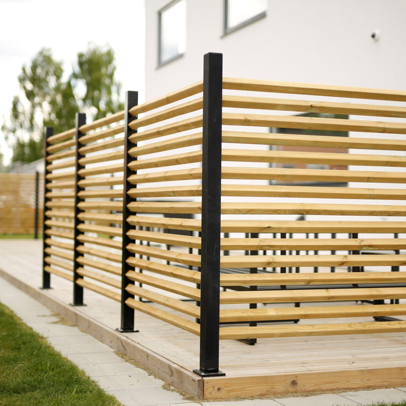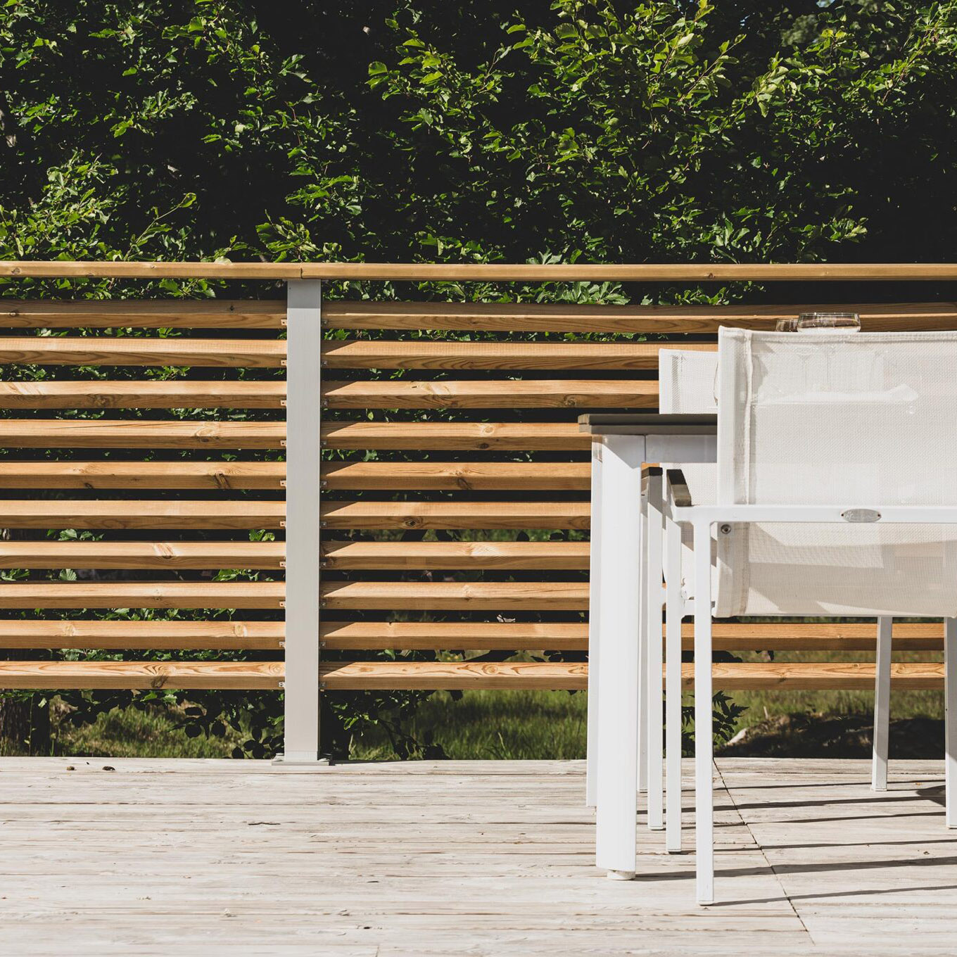 Vår storsäljare, staketstolpe Bolmen. Gedigna stolpar i aluminium som passar både som altanräcke och regelrätt staket. Det är dessutom enkelt att montera – du behöver bara impregnerat virke med standardmåttet två tum två.