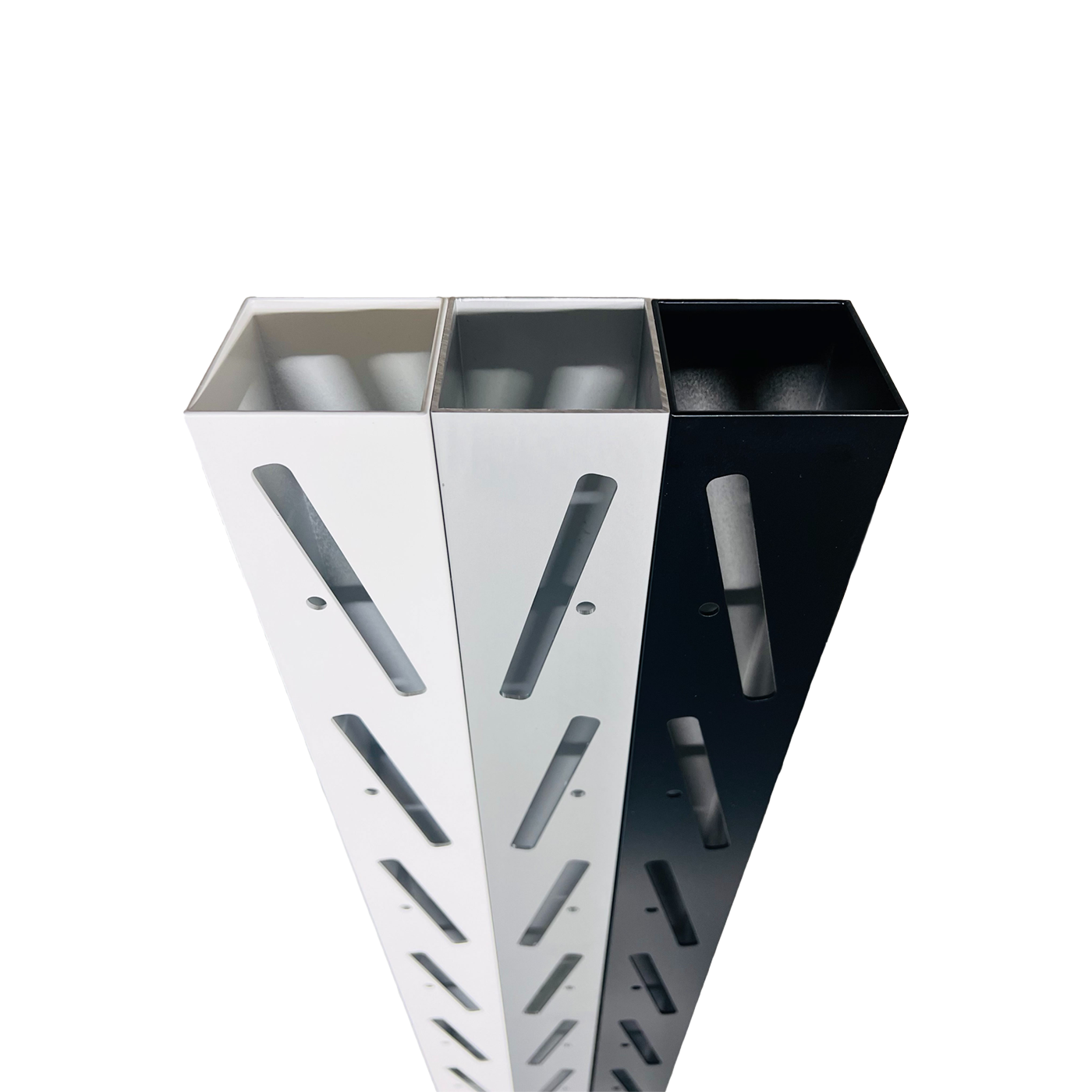 De kvalitativa stolparna har en dimension om 70 x 70 mm, med en godstjocklek som är hela 2 mm. Det gör det till en stabil och gedigen staketstolpe som du också kan välja färg på. Stolparna finns i tre färger: naturanodiserad eller vitlackerad (RAL 9010) eller mattsvart (RAL 9005).