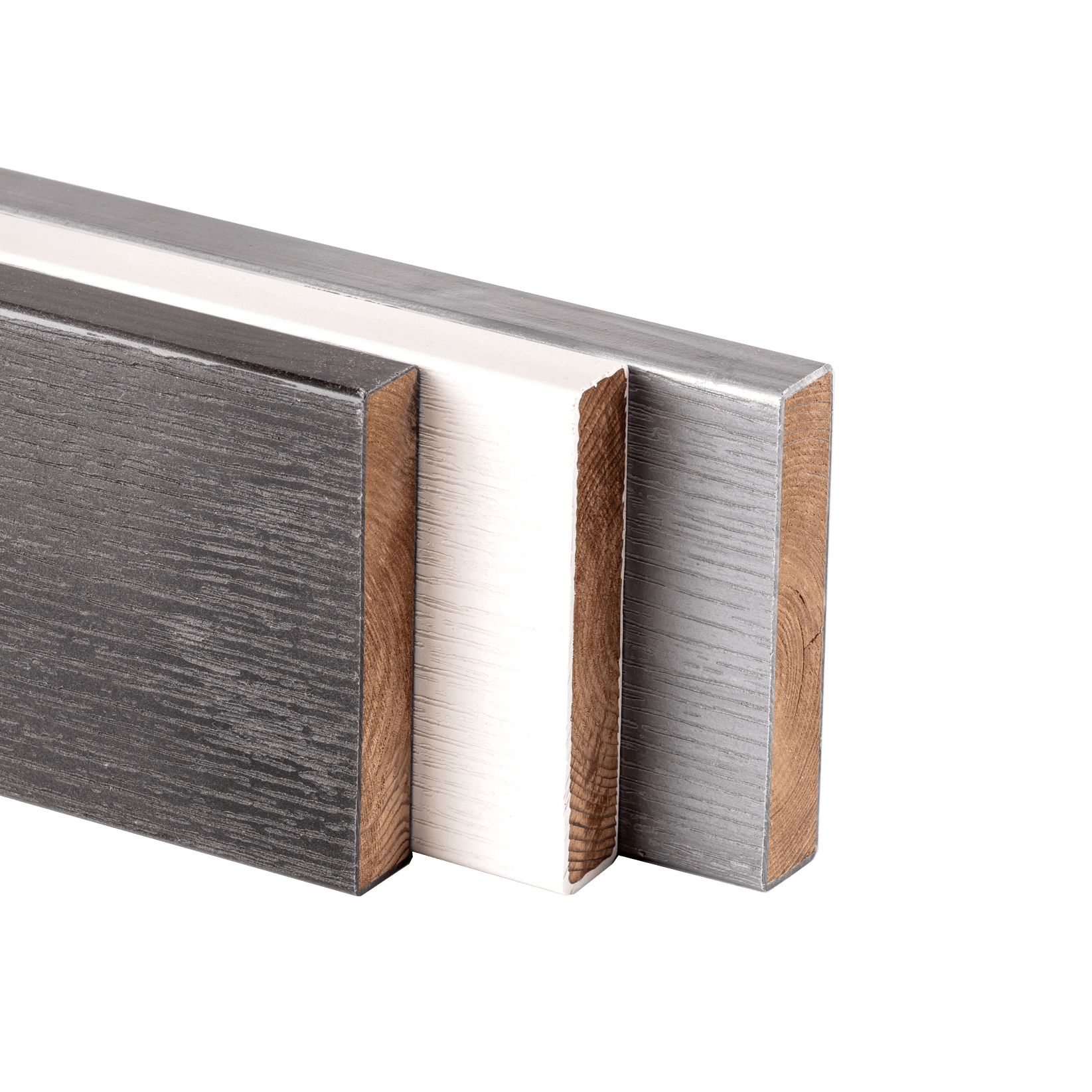 Träkärnan beläggs sedan med träfiberkomposit som produceras i Stora Ensos fabrik i Hylte. Kompositen består av återvunnet trä och en plastpolymer. Bland annat används endast vanliga plaster utan phtalater. Att använda sig av träfiberkomposit minskar plastanvändandet jämfört med 100% plast och ger dessutom profilen en mer naturlig träkänsla. Genom att belägga träkärnan med träfiberkomposit ger det produkten styrka och styvhet. Dessutom möjliggör det färgsättningen av produkten.
